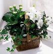 An assortment of blooming white plants in a basket will celebrate the day, any day.