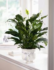 Offer unspoken words of comfort, hope and peace. Our creamy white ceramic planter holds an elegant peace lily plant. Send as a tribute, and a silent expression of your sympathies. |